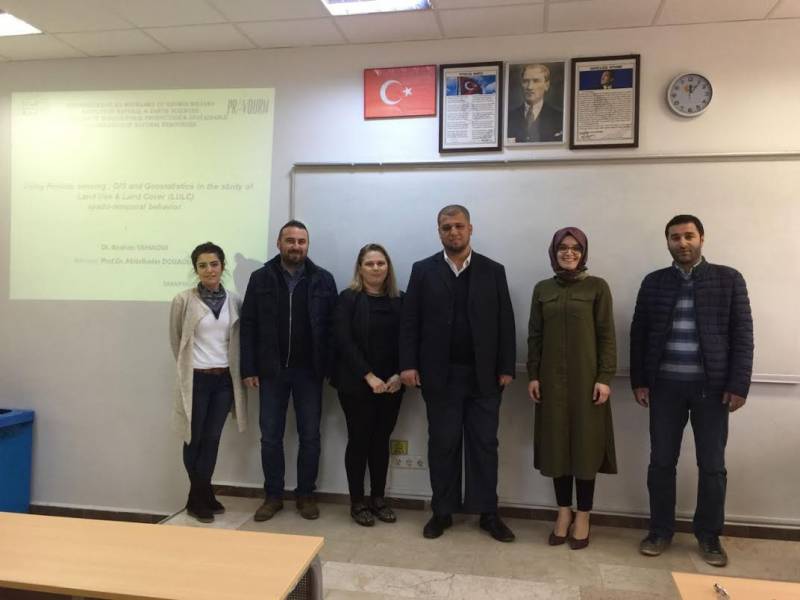 Bölümümüze Uzaktan Algılama, Cografi Bilgi Sistemleri ve Jeoistatistik konularinda kisa sureli çalışmak uzere gelen öğretim üyesi Sayın Dr. İbrahim Yahiaoui* bugun 203 nolu sınıfımızda "Using Remote sensing , GIS and Geostatistics in the study of Land Use & Land Cover (LULC) spatio-temporal behavior in the Cheliff plain (Northwest of Algeria)" konulu seminer vermistir.