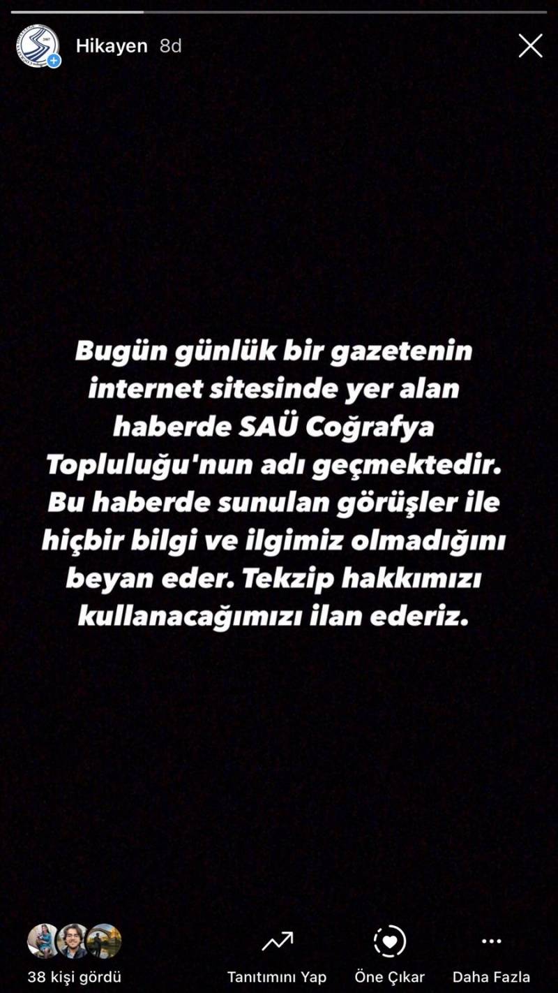 Günlük bir gazetenin internet sitesinde yer alan haberde SAÜ Coğrafya Topluluğu'nun adı geçmektedir. Bu haberde sunulan görüşler ile ilgili gerek SAÜ Coğrafya Topluluğu'nun gerekse SAÜ Coğrafya Bölümü'nün hiçbir bilgi ve ilgisi yoktur.